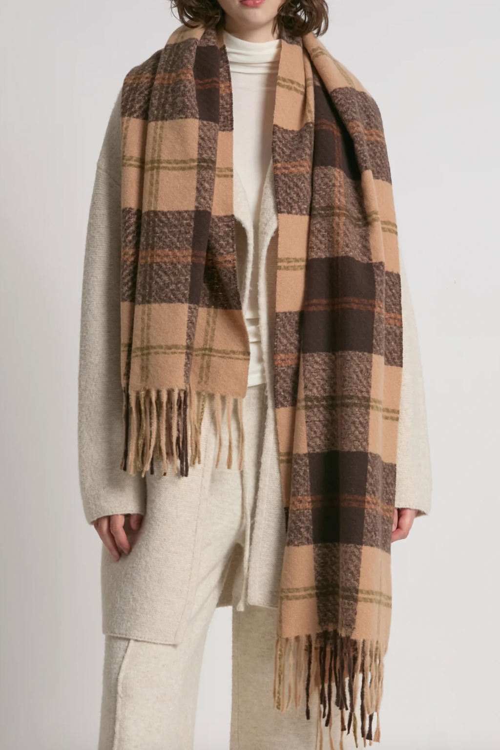 Fringe-finished with classic tartan pattern