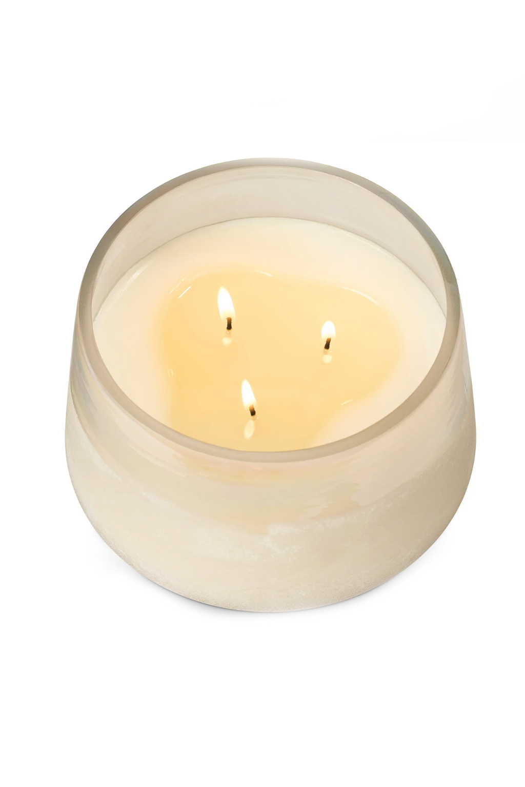 With a salt-kissed finish, the baltic glass is organic and soft in nature, providing a rich glow when lit.
