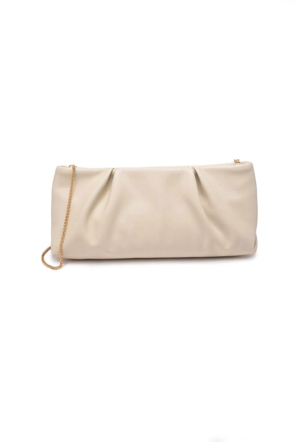 - Exterior Details: Gold Hardware, Detachable Chain Strap, Pleated Design