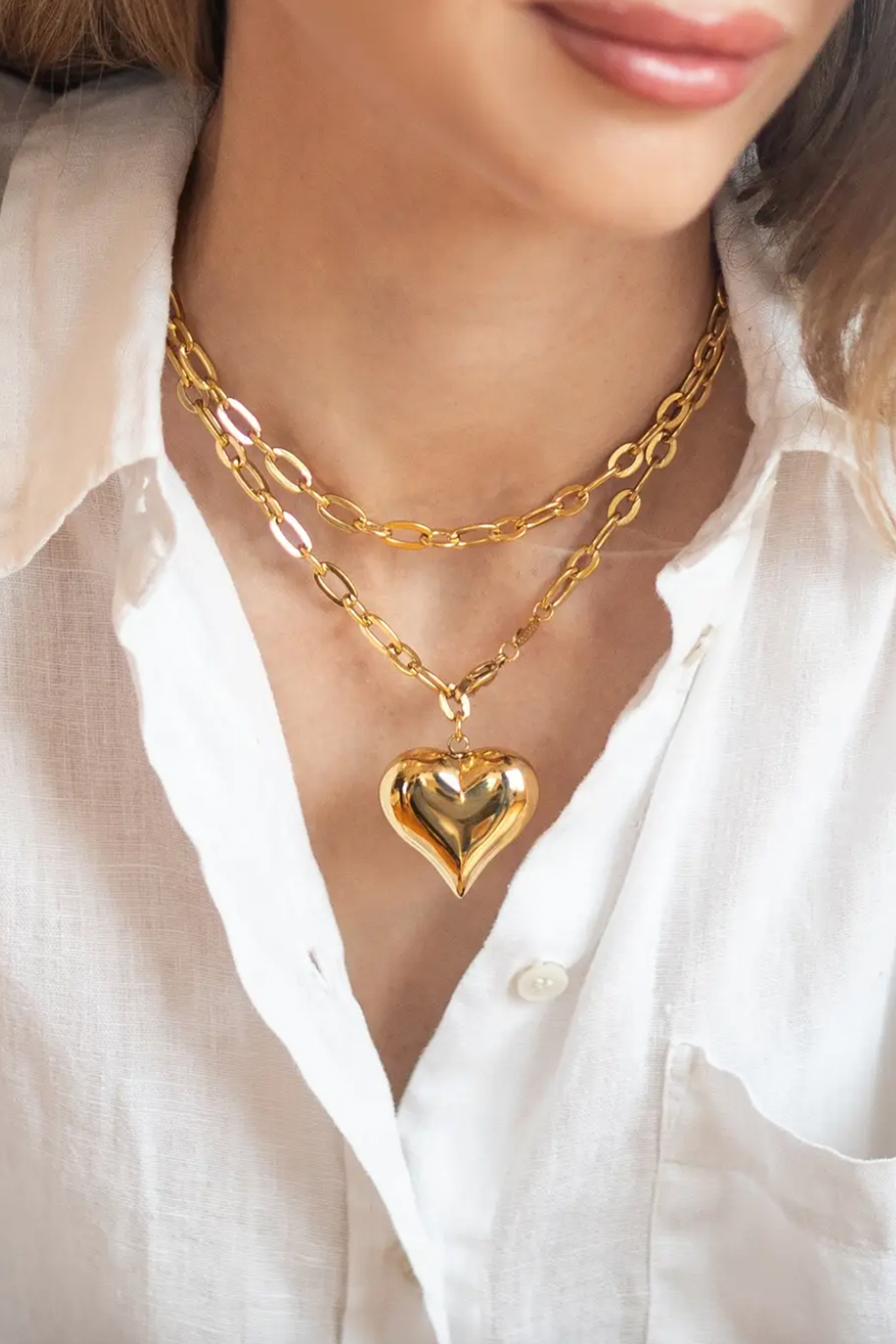 Waterproof💧💧💧 * Stainless steel * 18k Gold * Hypoallergenic * Nickel Free * Size: 38" chain with 15mm lobster clasp. Heart pendant: 35mm x 36mm