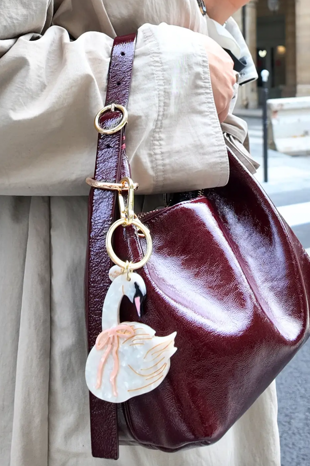 Hand Painted Bag Charm - Bow Swan