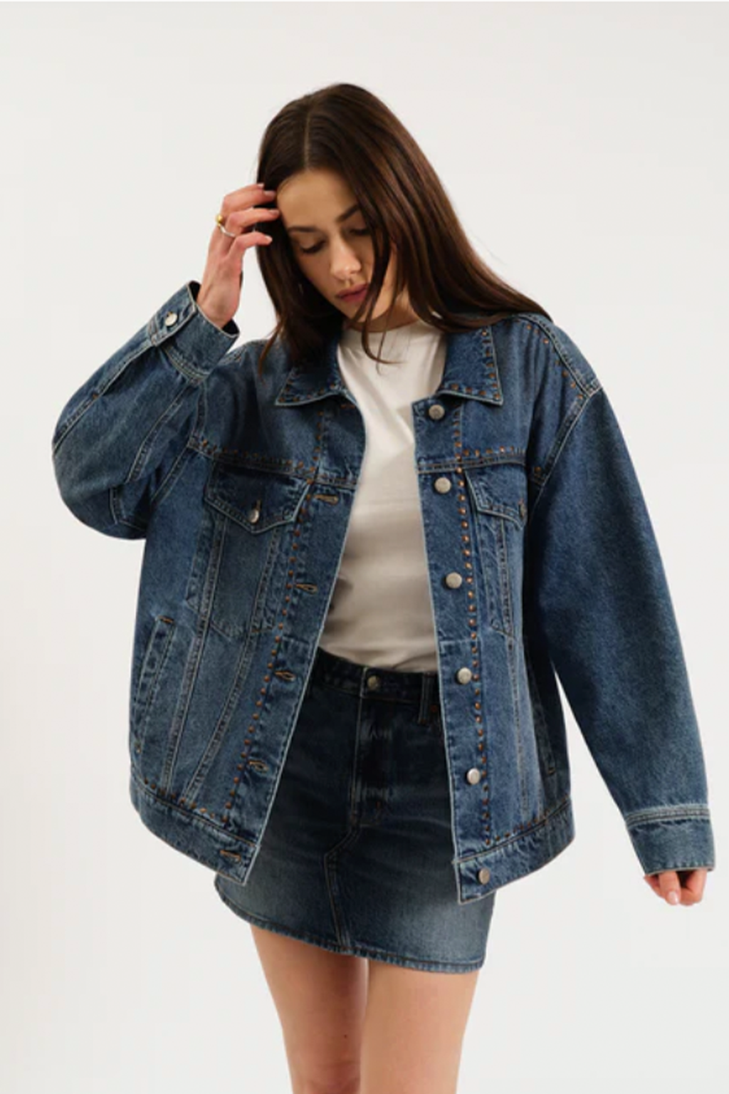 This relaxed denim jacket is the perfect throw-on-and-go complement to any outfit. With a an oversized, "boyfriend" inspired fit, it keeps its structure from its 100% cotton construction.