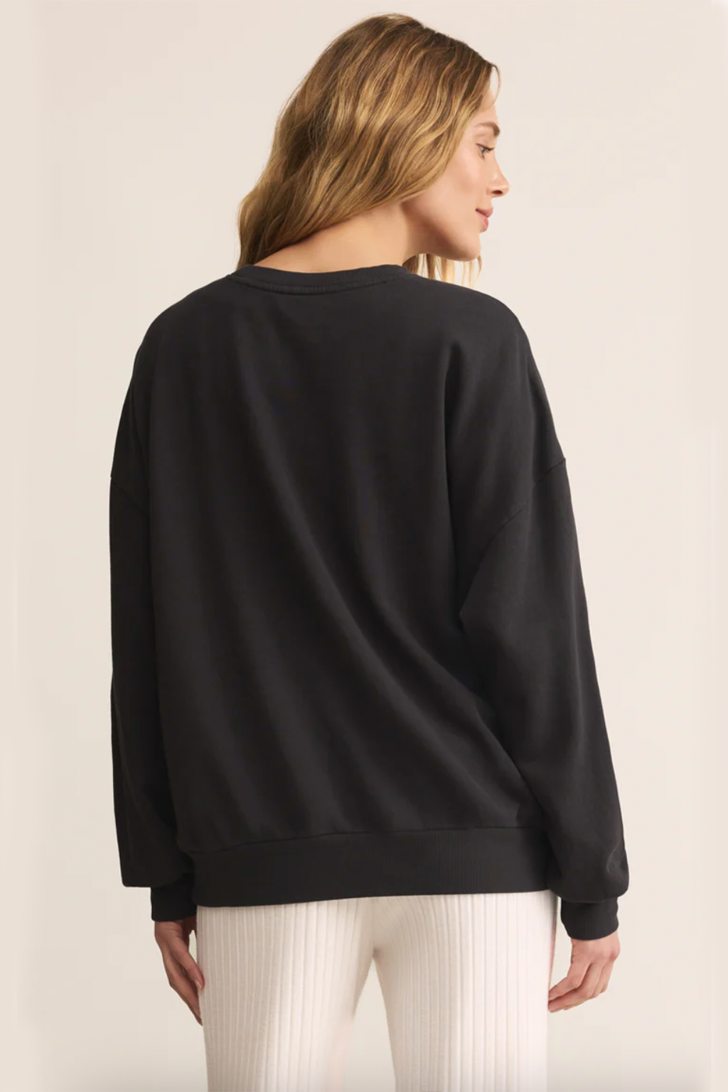 With its oversized “Champagne” graphic and soft brushed fleece, this relaxed sweatshirt sets the tone for festive days ahead. It’s a comfy conversation starter that pairs perfectly with everything from PJ pants to denim.
