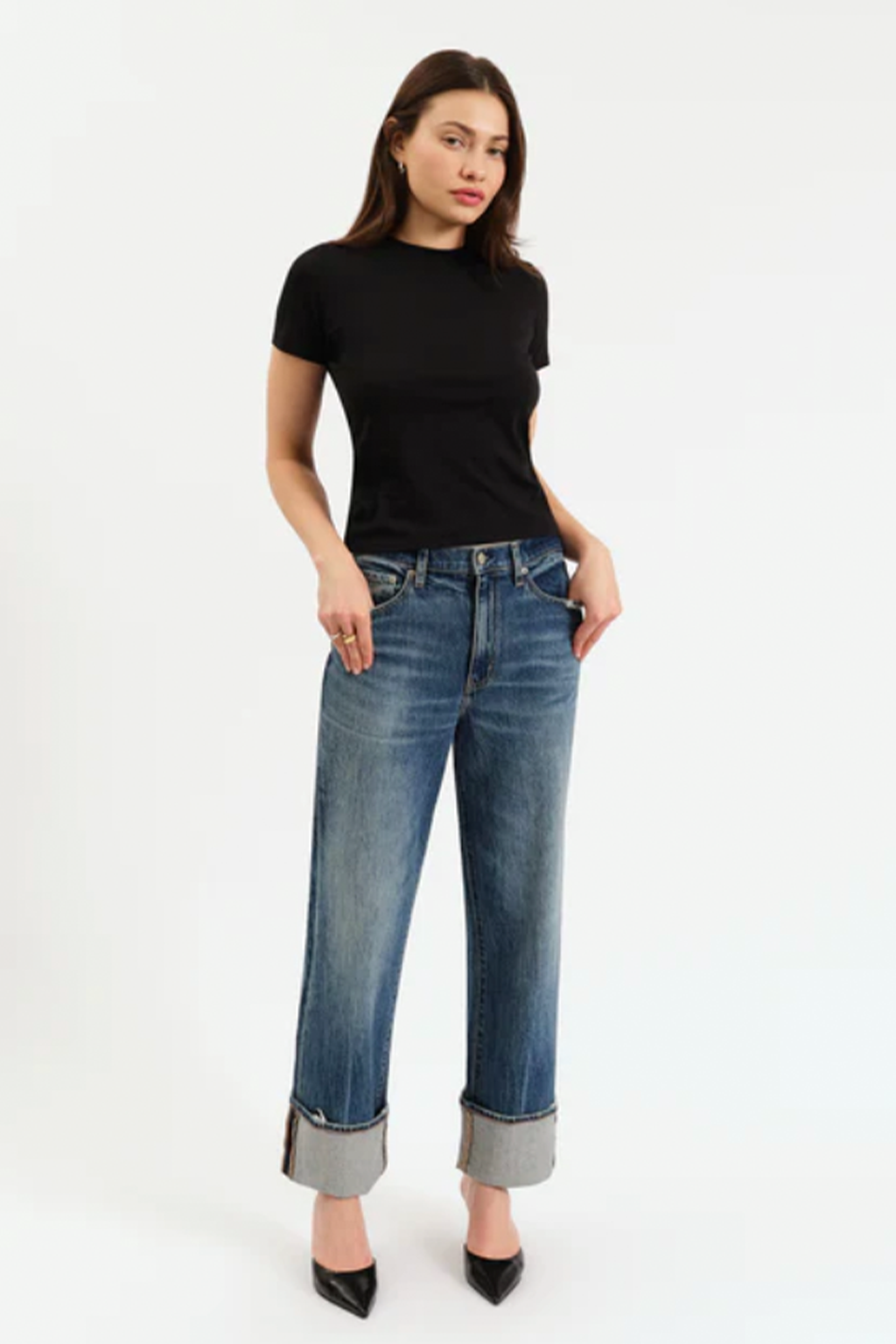 Take on the town in this versatile high rise loose jean. Rolled cuffs and authentic highs and lows add character to this it-girl fit. Constructed from our Tough Love fabric, this jean holds its shape but yields to your body in all the right ways.