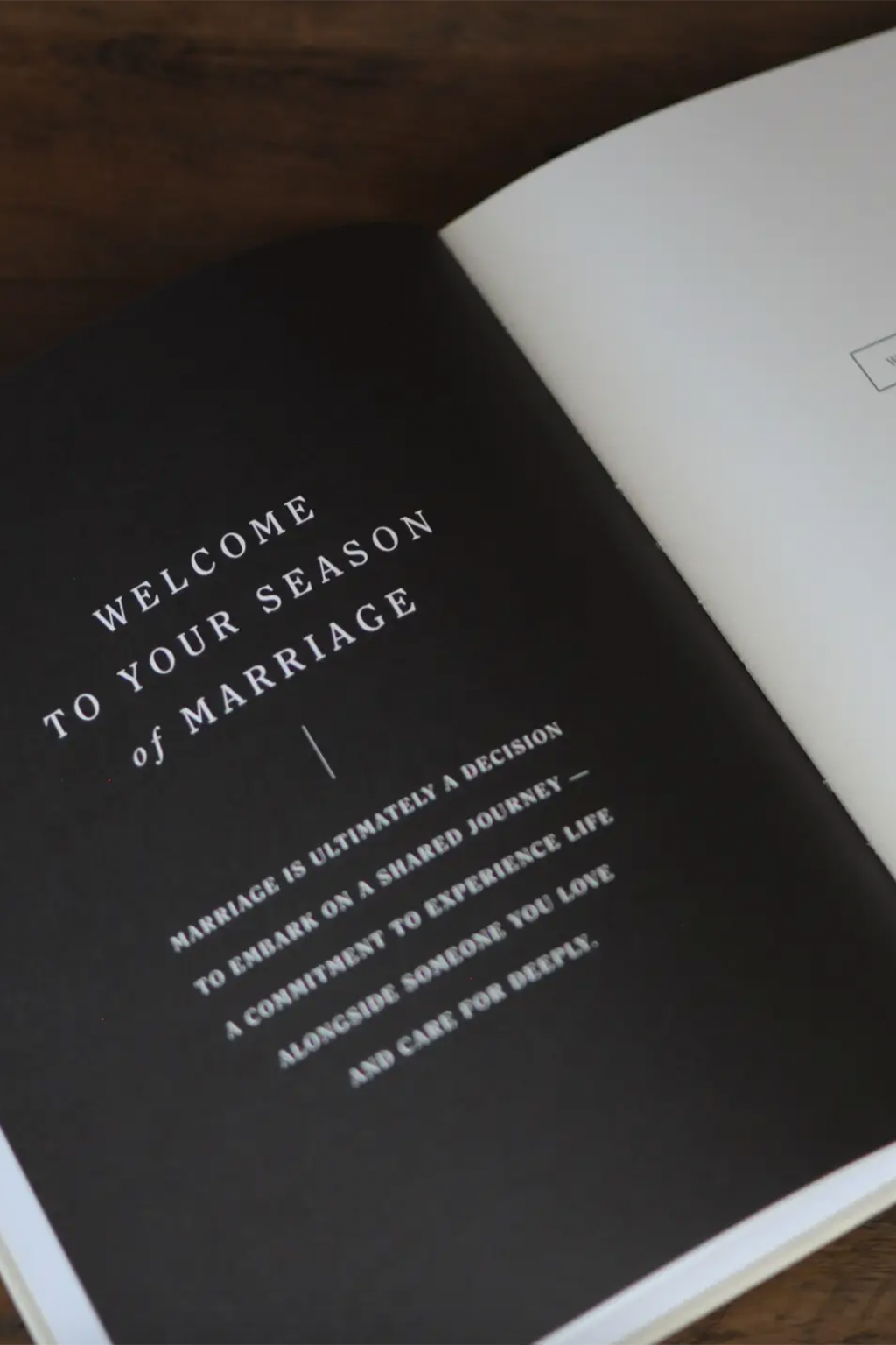 The Marriage Journal guides couples through their first years of marriage using relationship-building activities, meaningful conversation prompts, and journaling space to capture special moments including five years of anniversaries. SECTIONS 01 / Our Foundation • Values, Vision 02 / Our Relationship • Love, Communication, Change, Finance, Gratitude 03 / Our People • Family, Friends 04 / Our Memories • Firsts, Travels, Traditions 05 / Our Journal • Days, Months, Seasons, Years