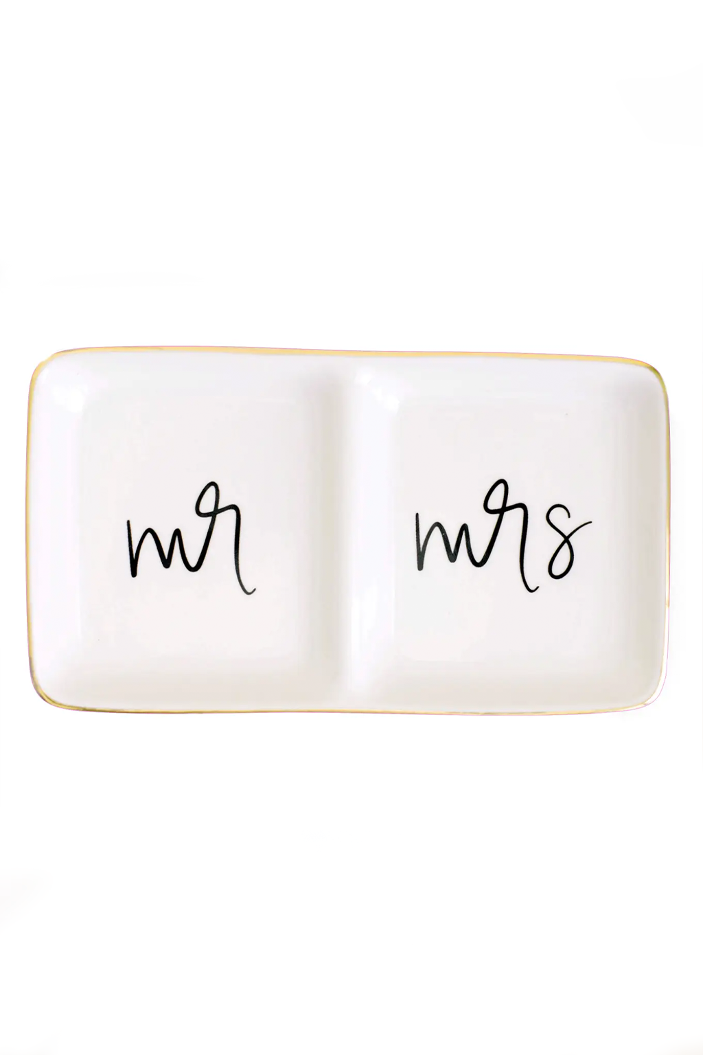 Every bride & bride-to-be will swoon over their new Mr. and Mrs. Jewelry Dish! Our beautiful gold foil trinket tray is perfect for placing wedding rings or earrings to keep them in a safe place. The gold foil details add a touch of chic glam, perfect for the office or bedroom! This beautiful tray also makes a great gift for a bridal shower!