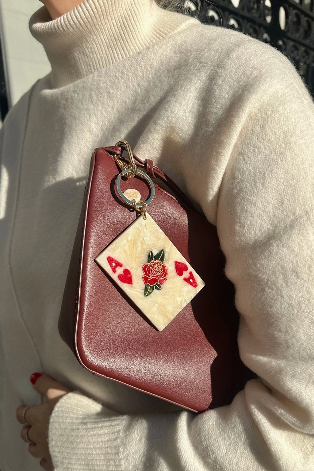 Our original bag charms are hand-painted and carefully hand-crafted from exceptional eco-friendly materials including our signature, biodegradable wood-pulp acetate.