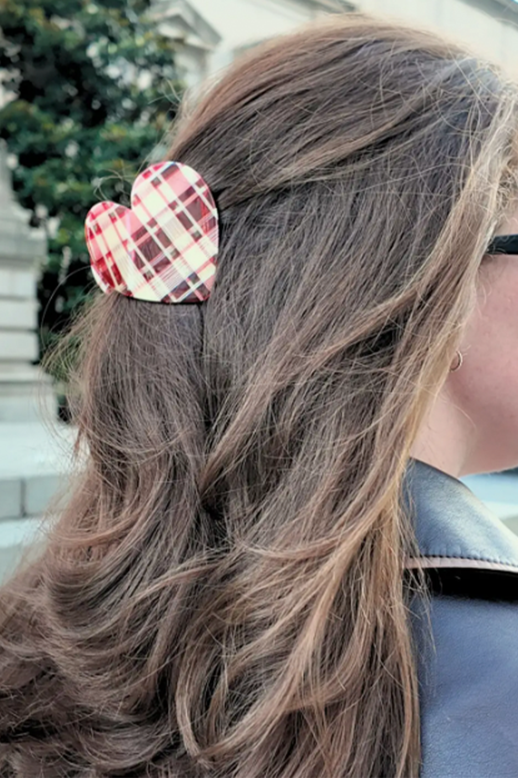Handmade Hair Clip - Red Plaid Heart