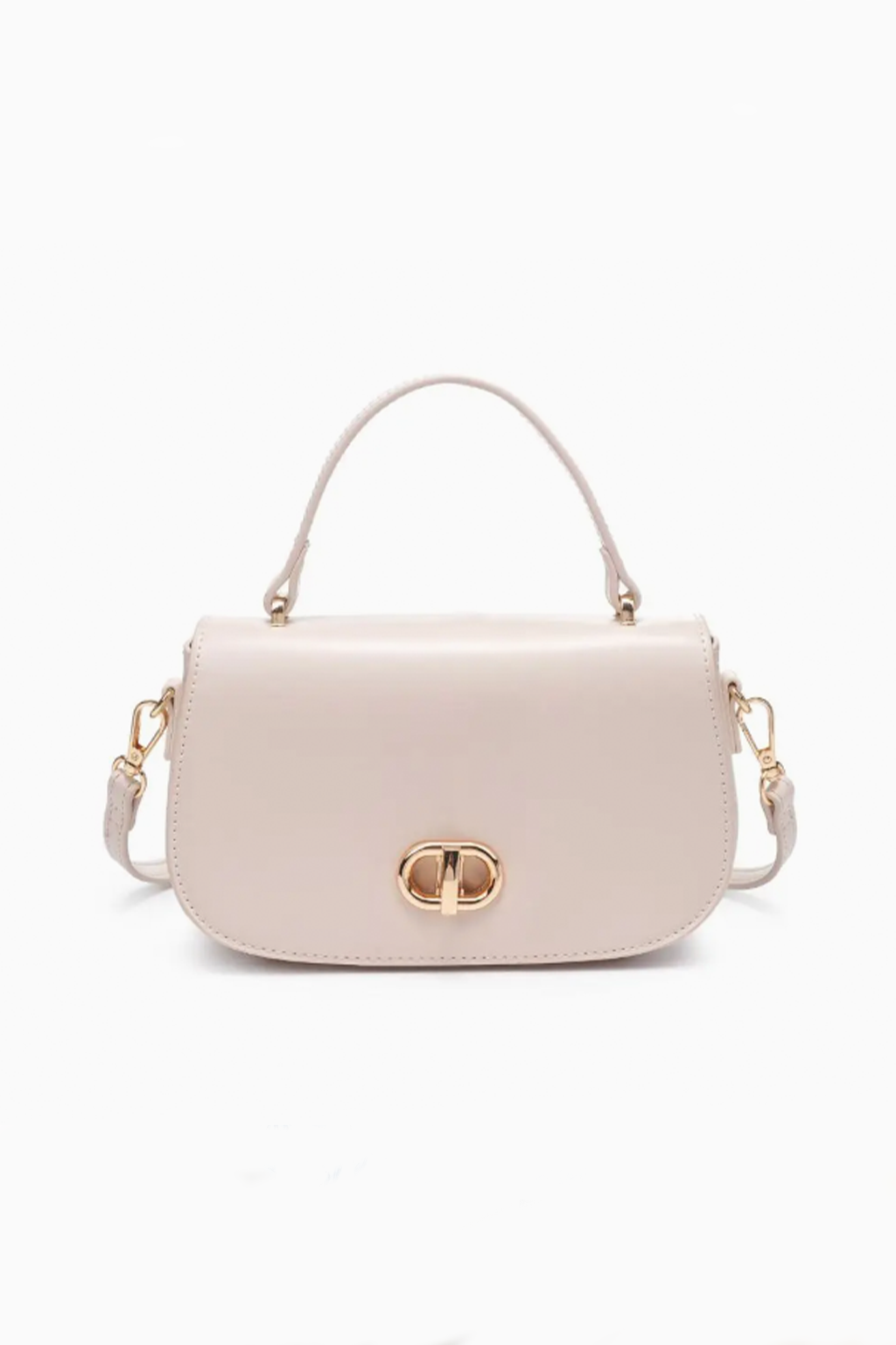 Elevate your accessory collection with this must-have handbag—your new go-to for any occasion! *Item Type: Crossbody *Material: Vegan Leather *Closure: Turn Lock *Exterior Details: Adjustable Shoulder Strap, Gold Hardware, Top Handle, Structured Shape *Interior Details: Fabric Lined, 1 Zip Pocket