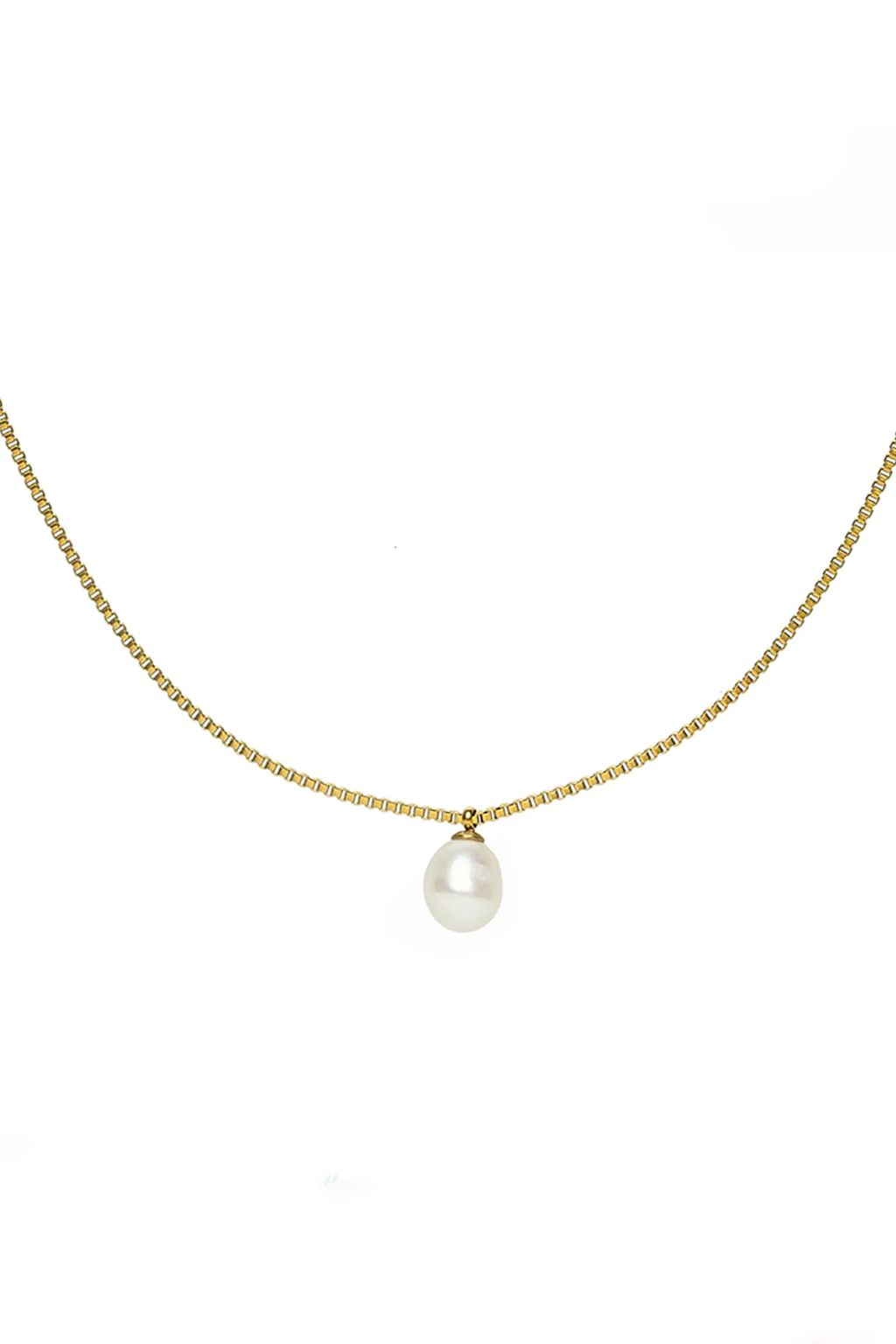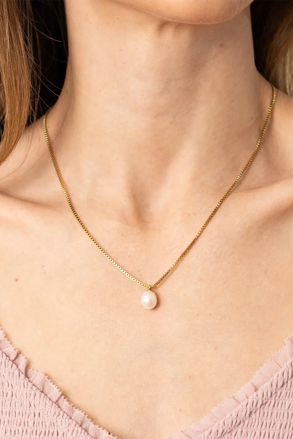 * Waterproof💧💧💧 * Stainless steel * 18k Gold and pearl charm * Hypoallergenic * Nickel Free * Size: 20” box chain with toggle slider. Pearl charm 12mm. Chain width 1.5mm