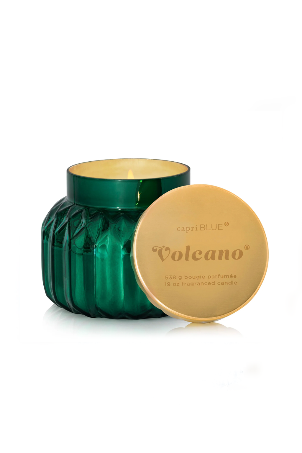 Elevate your space with the Volcano Royal Gem Signature Candle. This 19 oz candle features the iconic Volcano fragrance - tropical fruits and sugared citrus - housed in a luxe emerald green, gem-inspired jar with a scalloped gold lid. Perfect as a centerpiece or gift, this jewel-tone candle transforms any room with fragrance and style.